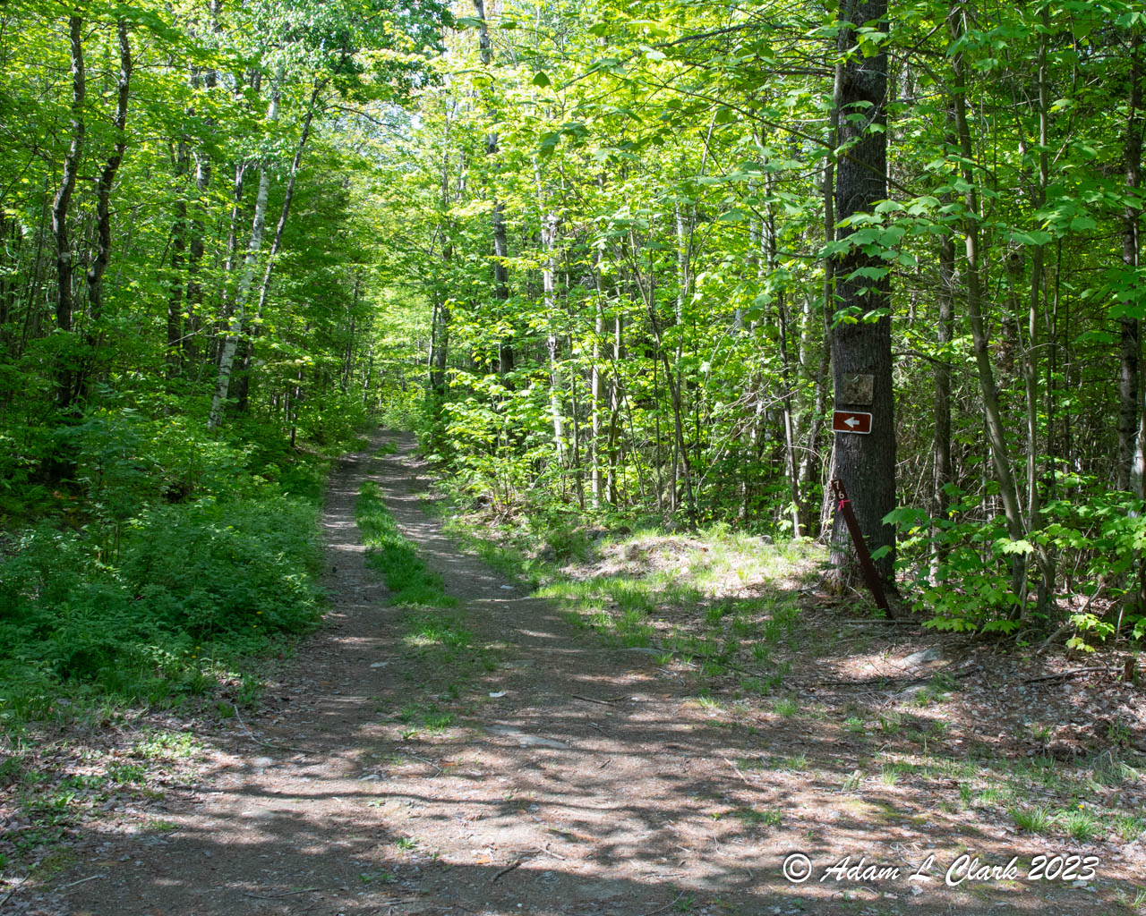 The hike starts off at a small parking lot by following a woods road. After a little bit of hiking you will come to a fork in the road where you will want to go to the left. There is a sign with an arrow it that helps to let you know which way to go. After a little bit more hiking, the road will be blocked with large rocks to keep any on/off road vehicles from going any further. The path gets just a little bit steeper here, but still is quite gentle by White Mountain standards. At the end of this last bit of woods road is a very small brook crossing (step over really) and an opening in the trees. The trail bears to the left in this opening and enters back into the woods becoming more like an actual hiking trail than a road.